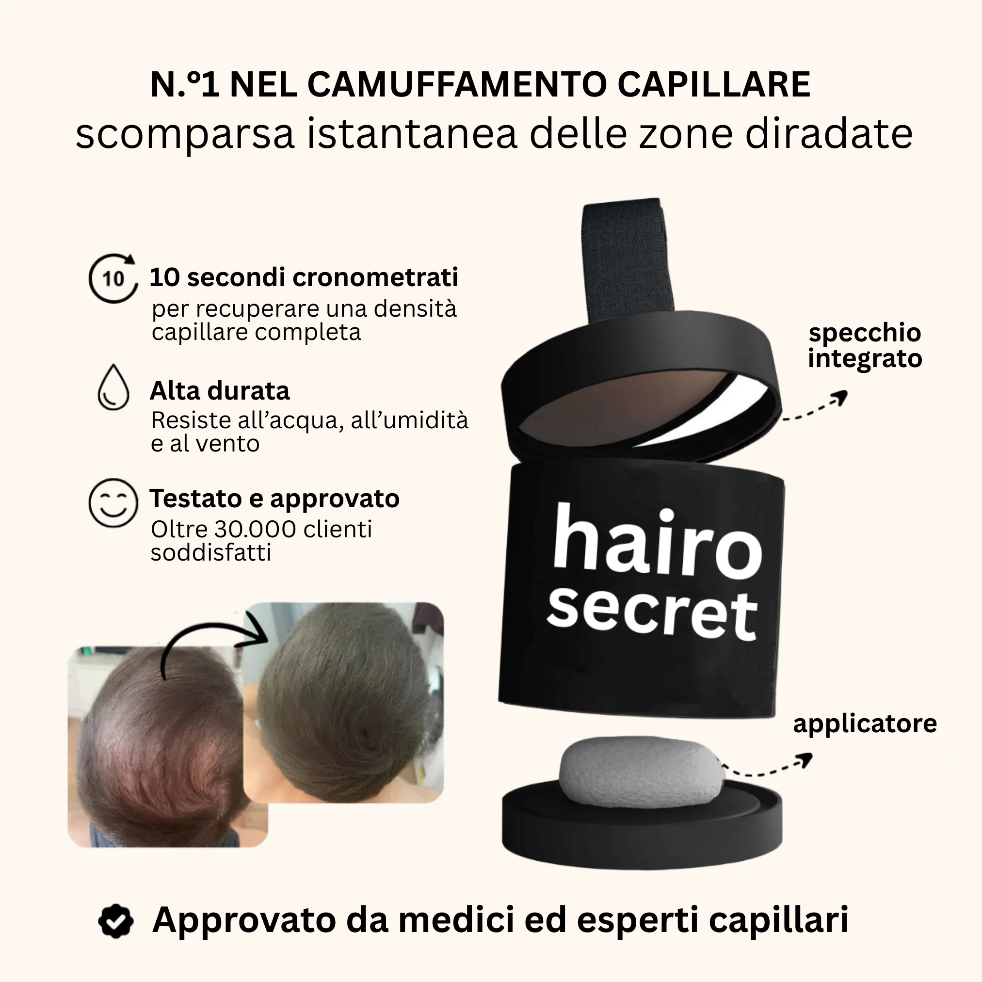 10 secondi netti per camuffare la calvizie